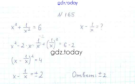 Ответы к §5. Умножение и деление рациональных дробей. Возведение рациональной дроби в степень Решение к главе 1. Рациональные выражения 165 Учебнику по Алгебре для 8 класса Мерзляк, Полонский Вентана-граф Алгоритм успеха 2016