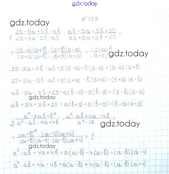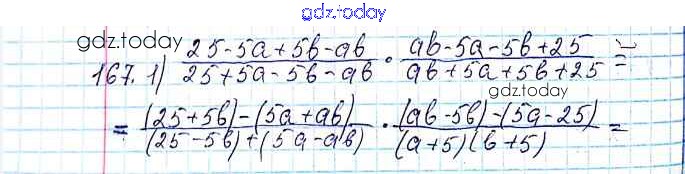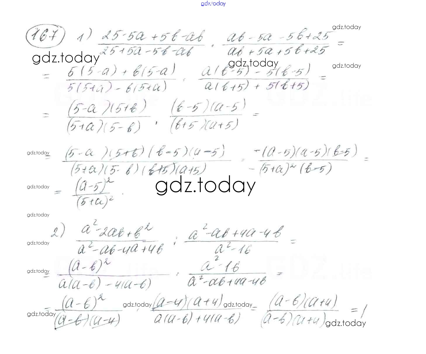 Ответы к §5. Умножение и деление рациональных дробей. Возведение рациональной дроби в степень Решение к главе 1. Рациональные выражения 167 Учебнику по Алгебре для 8 класса Мерзляк, Полонский Вентана-граф Алгоритм успеха 2016