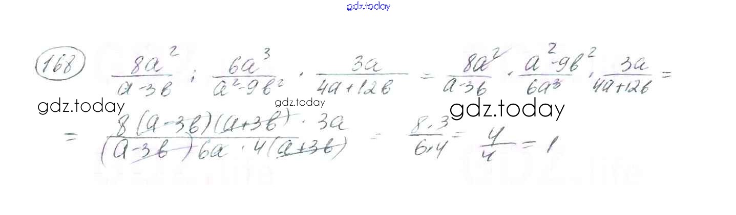 Ответы к §5. Умножение и деление рациональных дробей. Возведение рациональной дроби в степень Решение к главе 1. Рациональные выражения 168 Учебнику по Алгебре для 8 класса Мерзляк, Полонский Вентана-граф Алгоритм успеха 2016