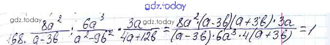На страницах сайта gdz.today вы найдете учебный и вспомогательный материал, направленный на улучшения знаний школьной программы. ГДЗ - онлайн мир знаний §5. Умножение и деление рациональных дробей. Возведение рациональной дроби в степень Решение к главе 1. Рациональные выражения 168 Учебнику по Алгебре для 8 класса Мерзляк, Полонский Вентана-граф Алгоритм успеха 2016