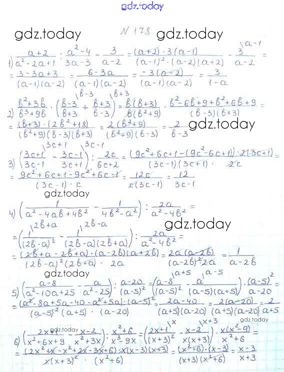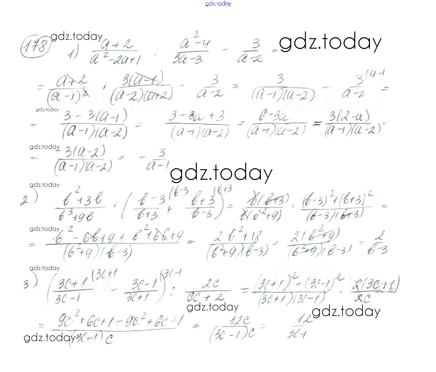 На страницах сайта gdz.today вы найдете учебный и вспомогательный материал, направленный на улучшения знаний школьной программы. ГДЗ - онлайн мир знаний §6. Тождественные преобразования рациональных выражений Решение к главе 1. Рациональные выражения 178 Учебнику по Алгебре для 8 класса Мерзляк, Полонский Вентана-граф Алгоритм успеха 2016