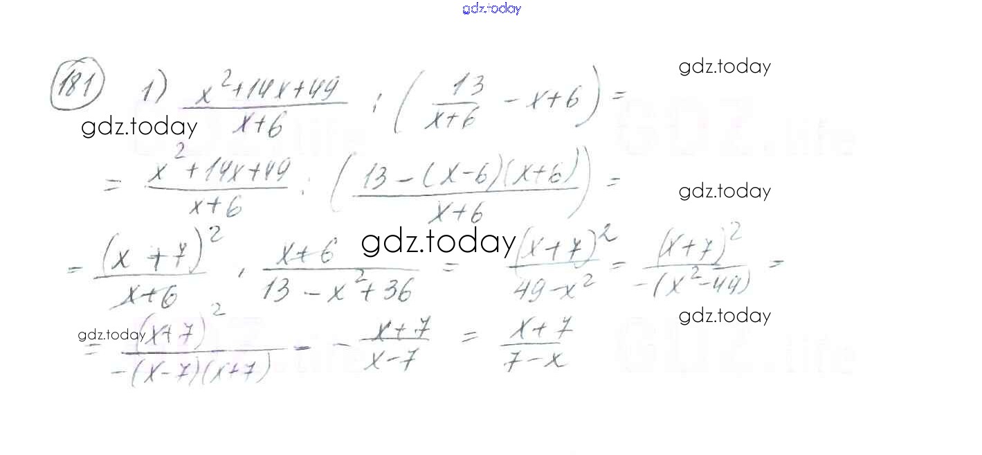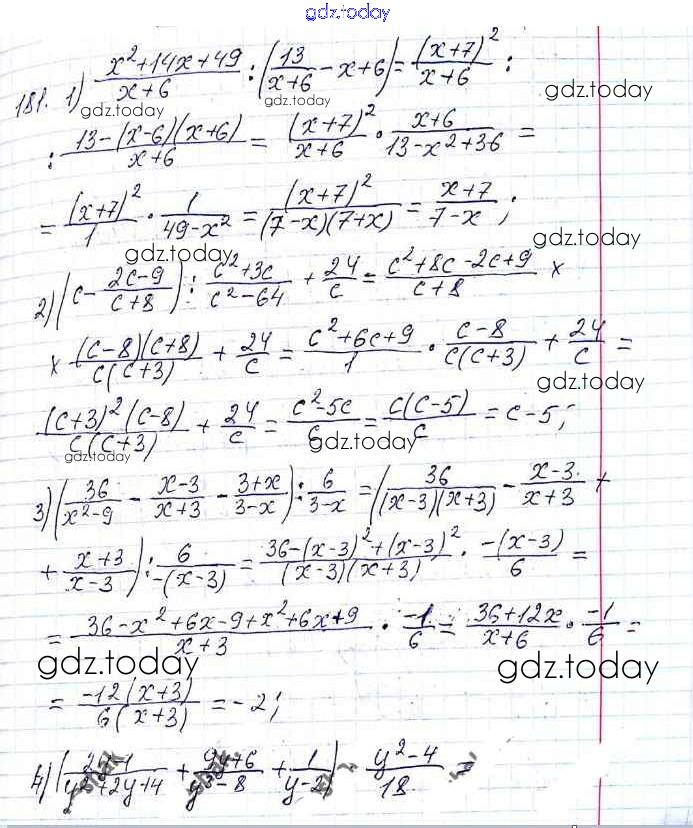 На страницах сайта gdz.today вы найдете учебный и вспомогательный материал, направленный на улучшения знаний школьной программы. ГДЗ - онлайн мир знаний §6. Тождественные преобразования рациональных выражений Решение к главе 1. Рациональные выражения 181 Учебнику по Алгебре для 8 класса Мерзляк, Полонский Вентана-граф Алгоритм успеха 2016