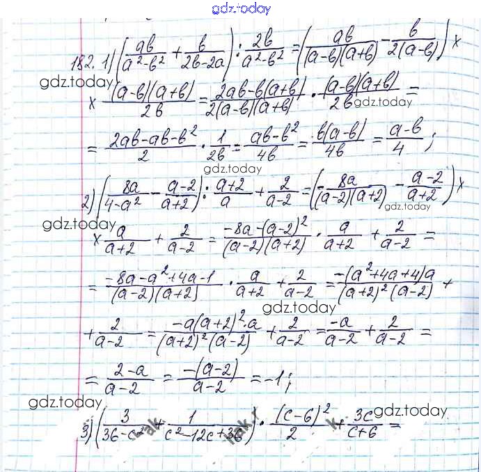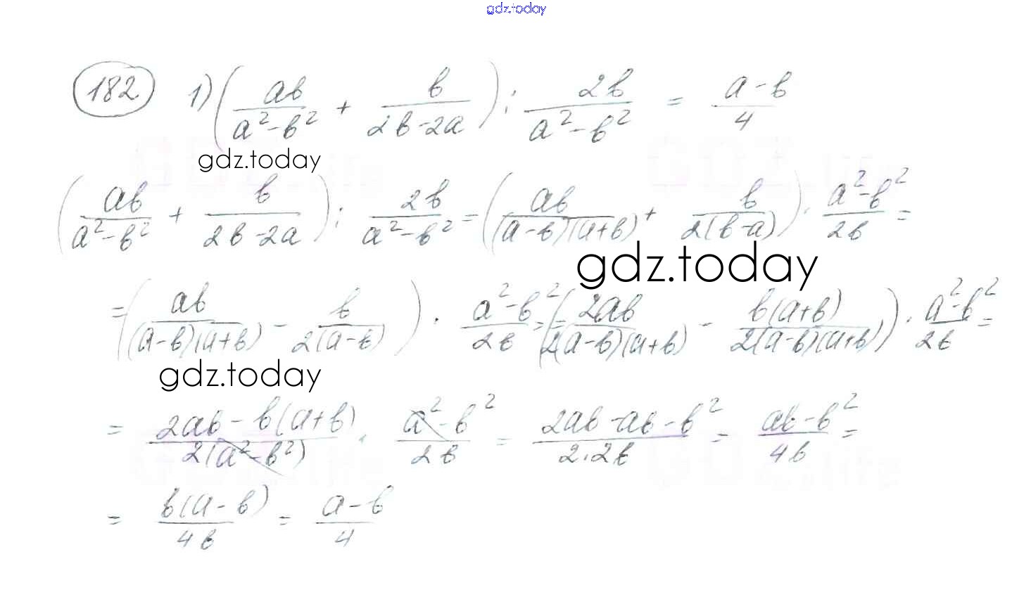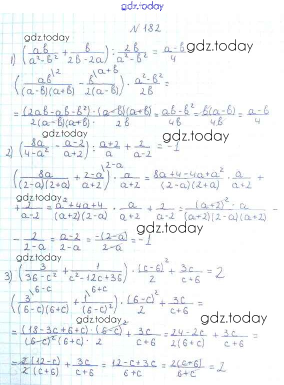 На страницах сайта gdz.today вы найдете учебный и вспомогательный материал, направленный на улучшения знаний школьной программы. ГДЗ - онлайн мир знаний §6. Тождественные преобразования рациональных выражений Решение к главе 1. Рациональные выражения 182 Учебнику по Алгебре для 8 класса Мерзляк, Полонский Вентана-граф Алгоритм успеха 2016