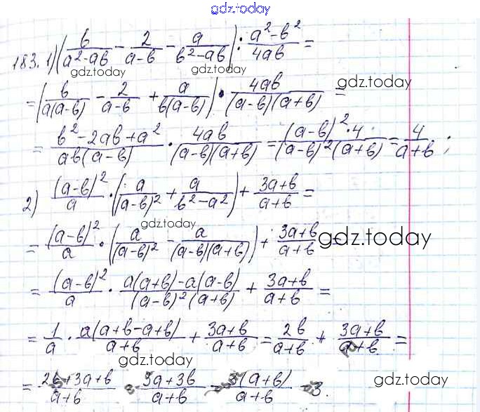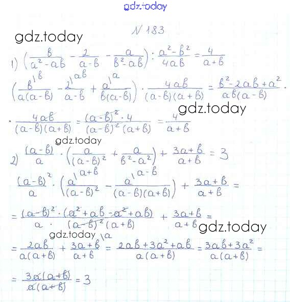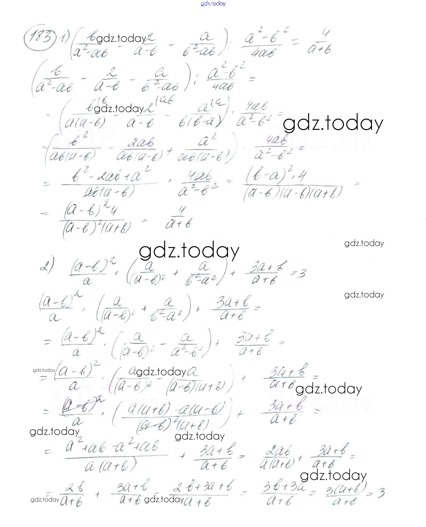 На страницах сайта gdz.today вы найдете учебный и вспомогательный материал, направленный на улучшения знаний школьной программы. ГДЗ - онлайн мир знаний §6. Тождественные преобразования рациональных выражений Решение к главе 1. Рациональные выражения 183 Учебнику по Алгебре для 8 класса Мерзляк, Полонский Вентана-граф Алгоритм успеха 2016