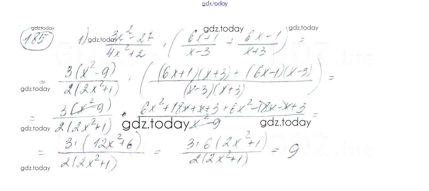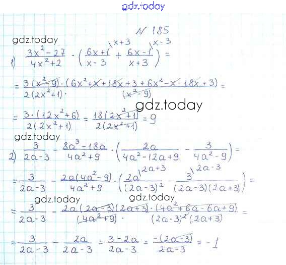 На страницах сайта gdz.today вы найдете учебный и вспомогательный материал, направленный на улучшения знаний школьной программы. ГДЗ - онлайн мир знаний §6. Тождественные преобразования рациональных выражений Решение к главе 1. Рациональные выражения 185 Учебнику по Алгебре для 8 класса Мерзляк, Полонский Вентана-граф Алгоритм успеха 2016