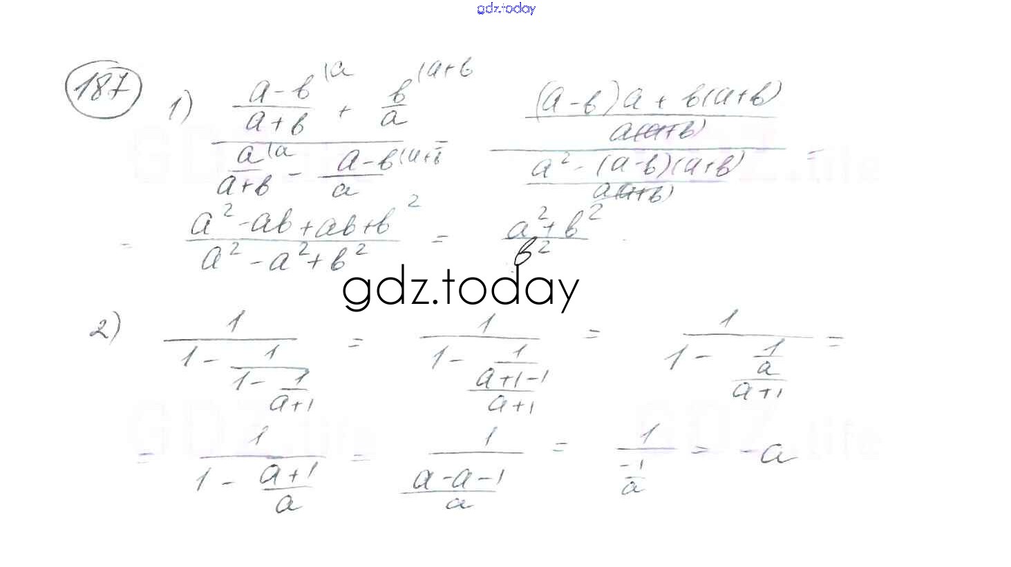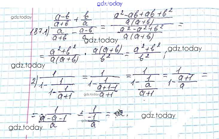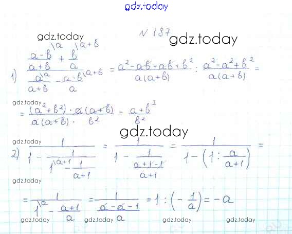 На страницах сайта gdz.today вы найдете учебный и вспомогательный материал, направленный на улучшения знаний школьной программы. ГДЗ - онлайн мир знаний §6. Тождественные преобразования рациональных выражений Решение к главе 1. Рациональные выражения 187 Учебнику по Алгебре для 8 класса Мерзляк, Полонский Вентана-граф Алгоритм успеха 2016
