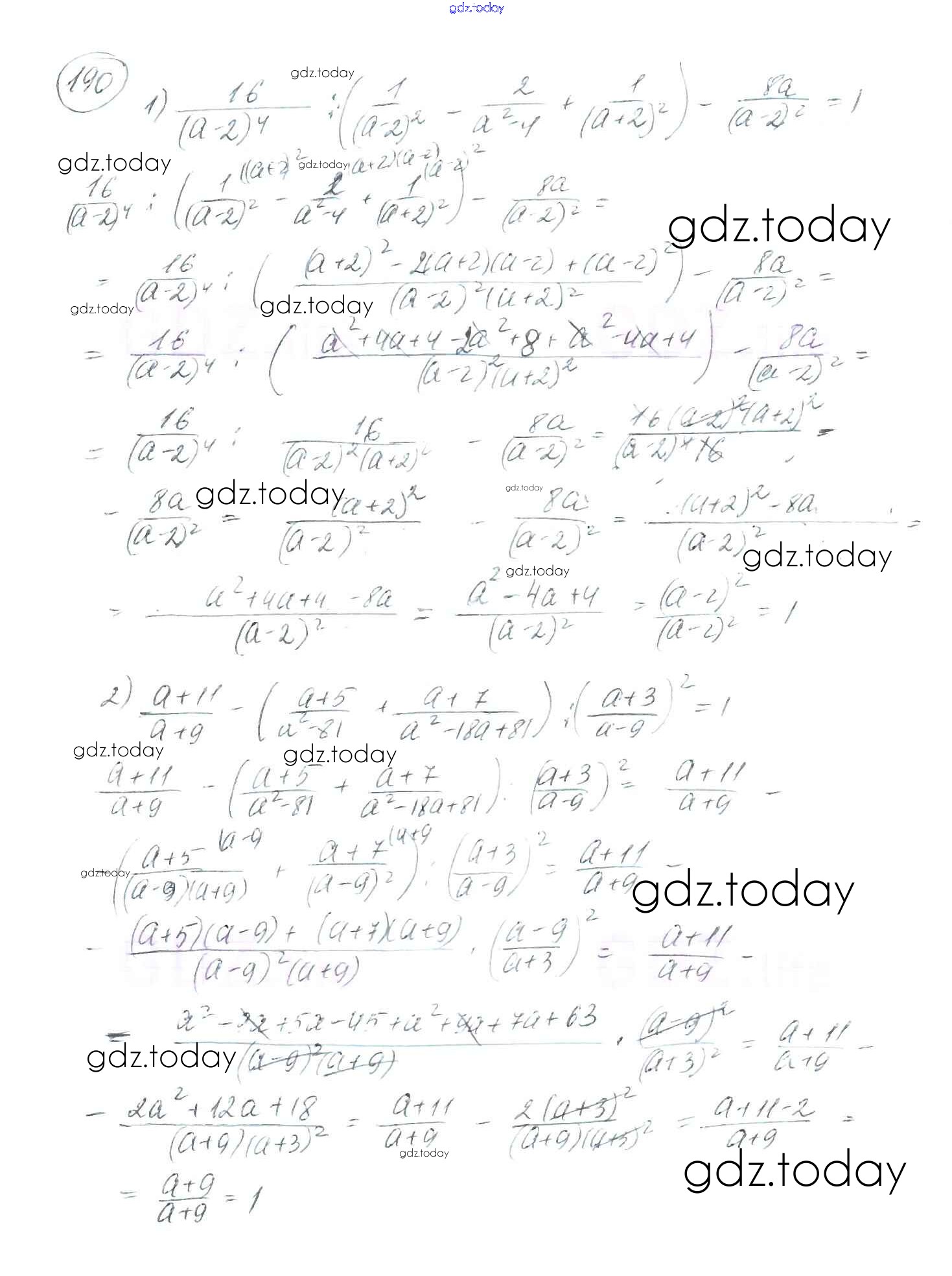 На страницах сайта gdz.today вы найдете учебный и вспомогательный материал, направленный на улучшения знаний школьной программы. ГДЗ - онлайн мир знаний §6. Тождественные преобразования рациональных выражений Решение к главе 1. Рациональные выражения 190 Учебнику по Алгебре для 8 класса Мерзляк, Полонский Вентана-граф Алгоритм успеха 2016