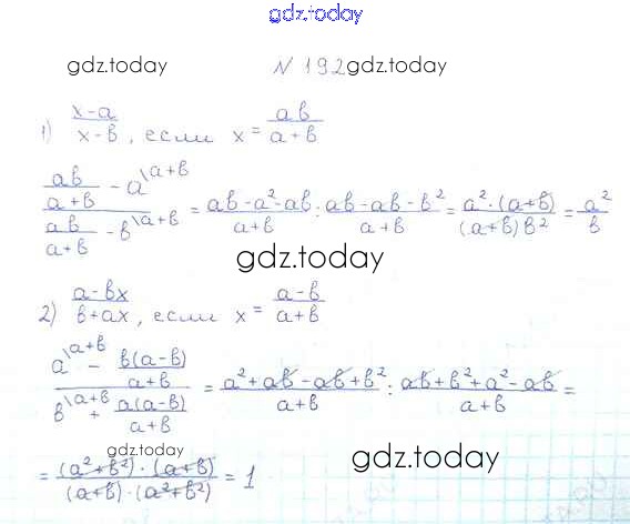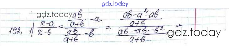 На страницах сайта gdz.today вы найдете учебный и вспомогательный материал, направленный на улучшения знаний школьной программы. ГДЗ - онлайн мир знаний §6. Тождественные преобразования рациональных выражений Решение к главе 1. Рациональные выражения 192 Учебнику по Алгебре для 8 класса Мерзляк, Полонский Вентана-граф Алгоритм успеха 2016