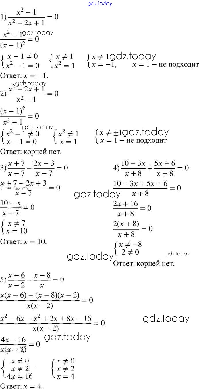 Ответы к §7. Равносильные уравнения. Рациональные уравнения Решение к главе 1. Рациональные выражения 208 Учебнику по Алгебре для 8 класса Мерзляк, Полонский Вентана-граф Алгоритм успеха 2016