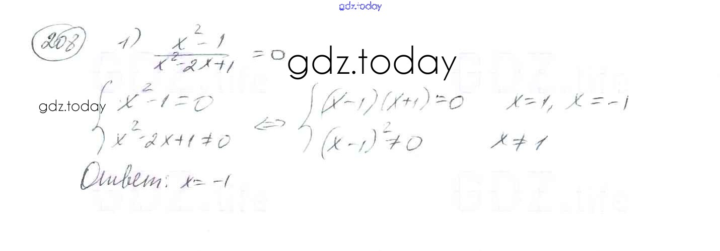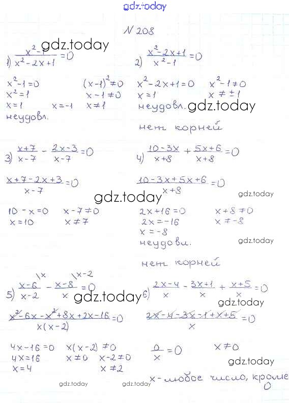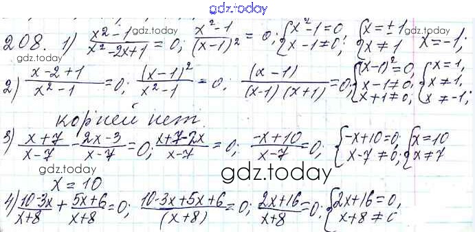 На страницах сайта gdz.today вы найдете учебный и вспомогательный материал, направленный на улучшения знаний школьной программы. ГДЗ - онлайн мир знаний §7. Равносильные уравнения. Рациональные уравнения Решение к главе 1. Рациональные выражения 208 Учебнику по Алгебре для 8 класса Мерзляк, Полонский Вентана-граф Алгоритм успеха 2016