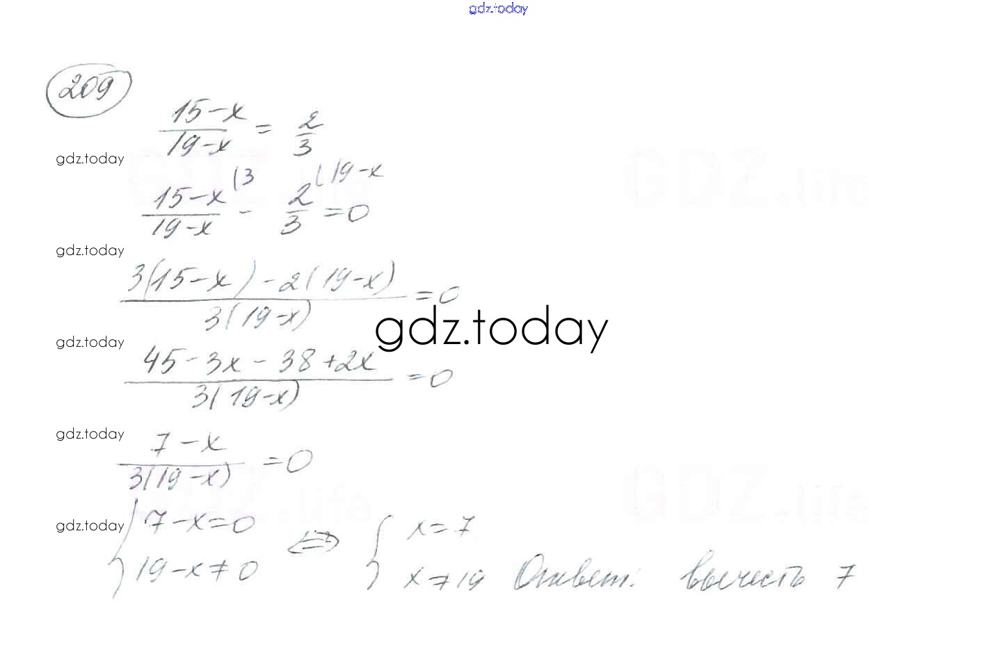 На страницах сайта gdz.today вы найдете учебный и вспомогательный материал, направленный на улучшения знаний школьной программы. ГДЗ - онлайн мир знаний §7. Равносильные уравнения. Рациональные уравнения Решение к главе 1. Рациональные выражения 209 Учебнику по Алгебре для 8 класса Мерзляк, Полонский Вентана-граф Алгоритм успеха 2016