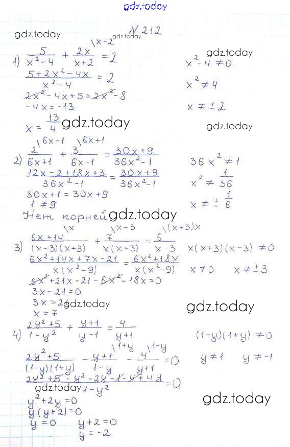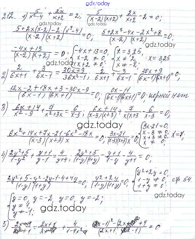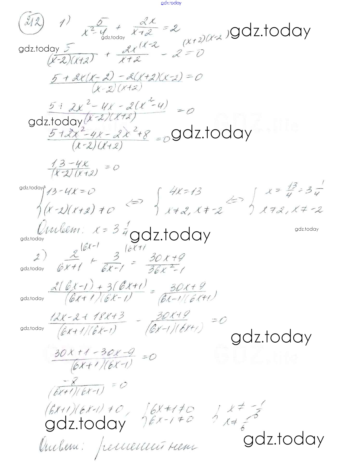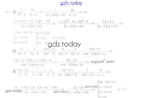 На страницах сайта gdz.today вы найдете учебный и вспомогательный материал, направленный на улучшения знаний школьной программы. ГДЗ - онлайн мир знаний §7. Равносильные уравнения. Рациональные уравнения Решение к главе 1. Рациональные выражения 212 Учебнику по Алгебре для 8 класса Мерзляк, Полонский Вентана-граф Алгоритм успеха 2016