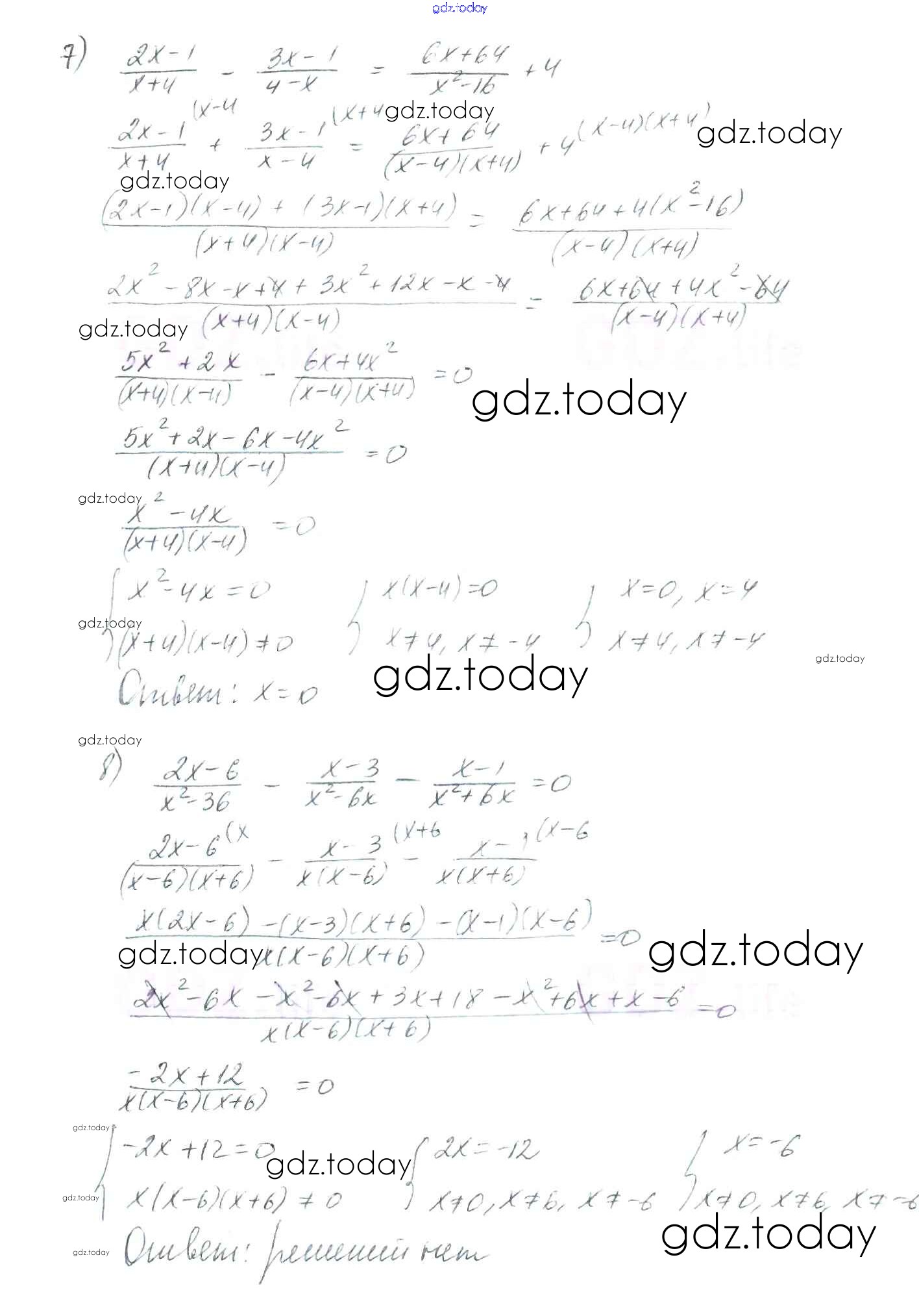 Ответы к §7. Равносильные уравнения. Рациональные уравнения Решение к главе 1. Рациональные выражения 212 Учебнику по Алгебре для 8 класса Мерзляк, Полонский Вентана-граф Алгоритм успеха 2016