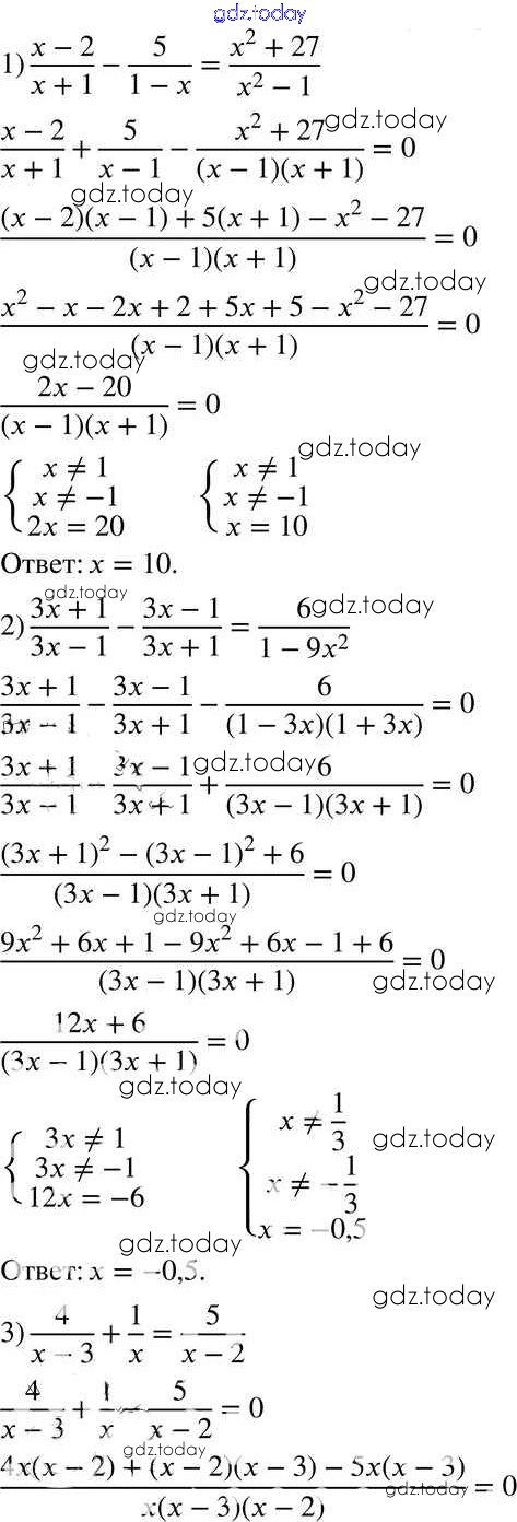 Ответы к §7. Равносильные уравнения. Рациональные уравнения Решение к главе 1. Рациональные выражения 213 Учебнику по Алгебре для 8 класса Мерзляк, Полонский Вентана-граф Алгоритм успеха 2016