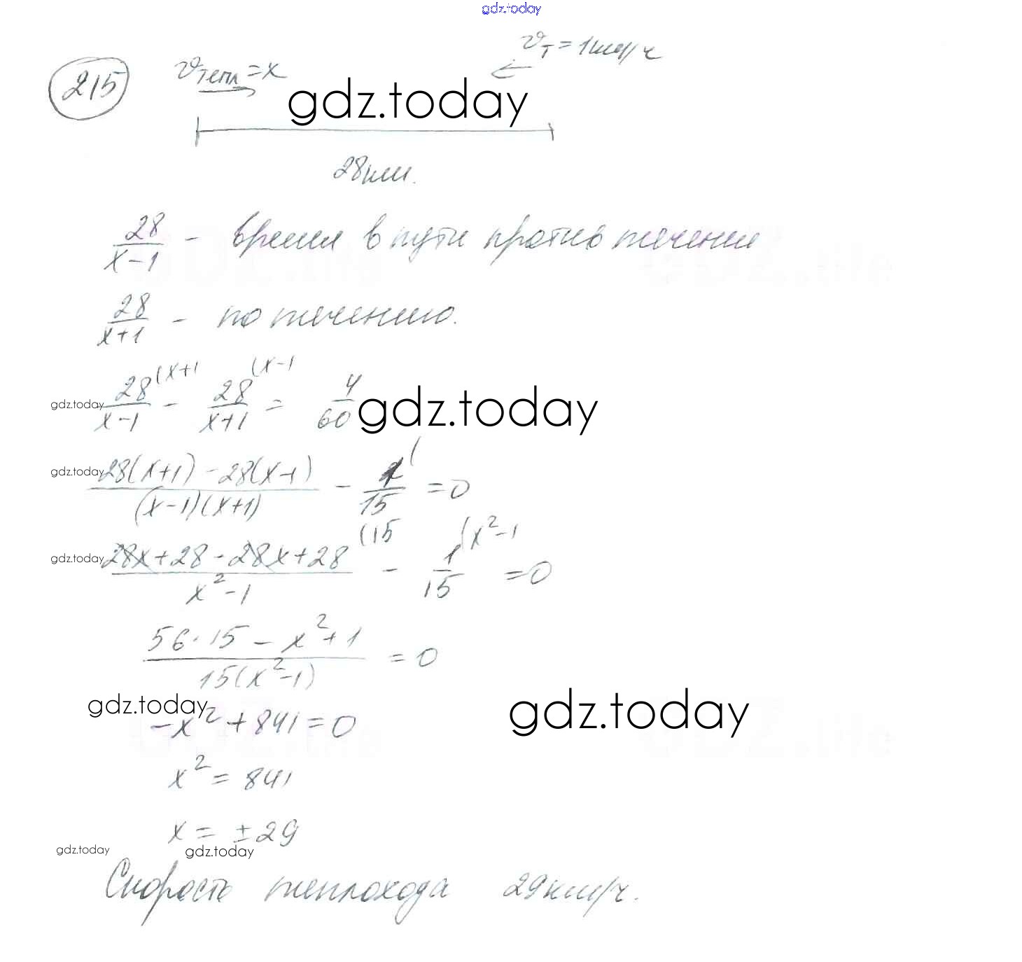 На страницах сайта gdz.today вы найдете учебный и вспомогательный материал, направленный на улучшения знаний школьной программы. ГДЗ - онлайн мир знаний §7. Равносильные уравнения. Рациональные уравнения Решение к главе 1. Рациональные выражения 215 Учебнику по Алгебре для 8 класса Мерзляк, Полонский Вентана-граф Алгоритм успеха 2016
