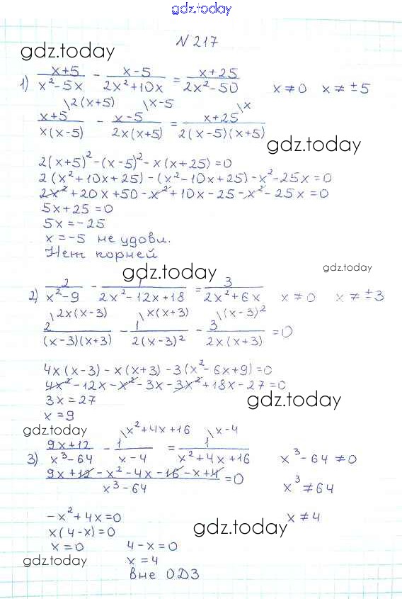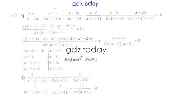На страницах сайта gdz.today вы найдете учебный и вспомогательный материал, направленный на улучшения знаний школьной программы. ГДЗ - онлайн мир знаний §7. Равносильные уравнения. Рациональные уравнения Решение к главе 1. Рациональные выражения 217 Учебнику по Алгебре для 8 класса Мерзляк, Полонский Вентана-граф Алгоритм успеха 2016