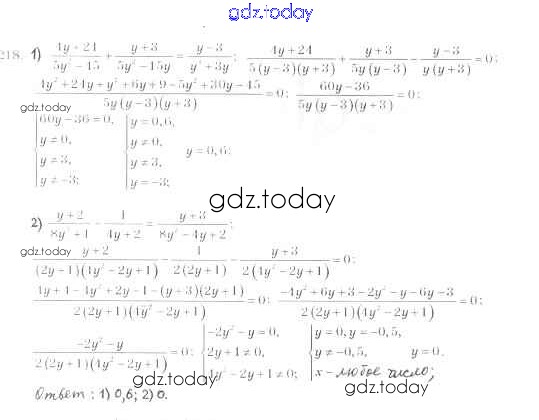 Ответы к §7. Равносильные уравнения. Рациональные уравнения Решение к главе 1. Рациональные выражения 218 Учебнику по Алгебре для 8 класса Мерзляк, Полонский Вентана-граф Алгоритм успеха 2016