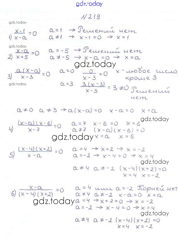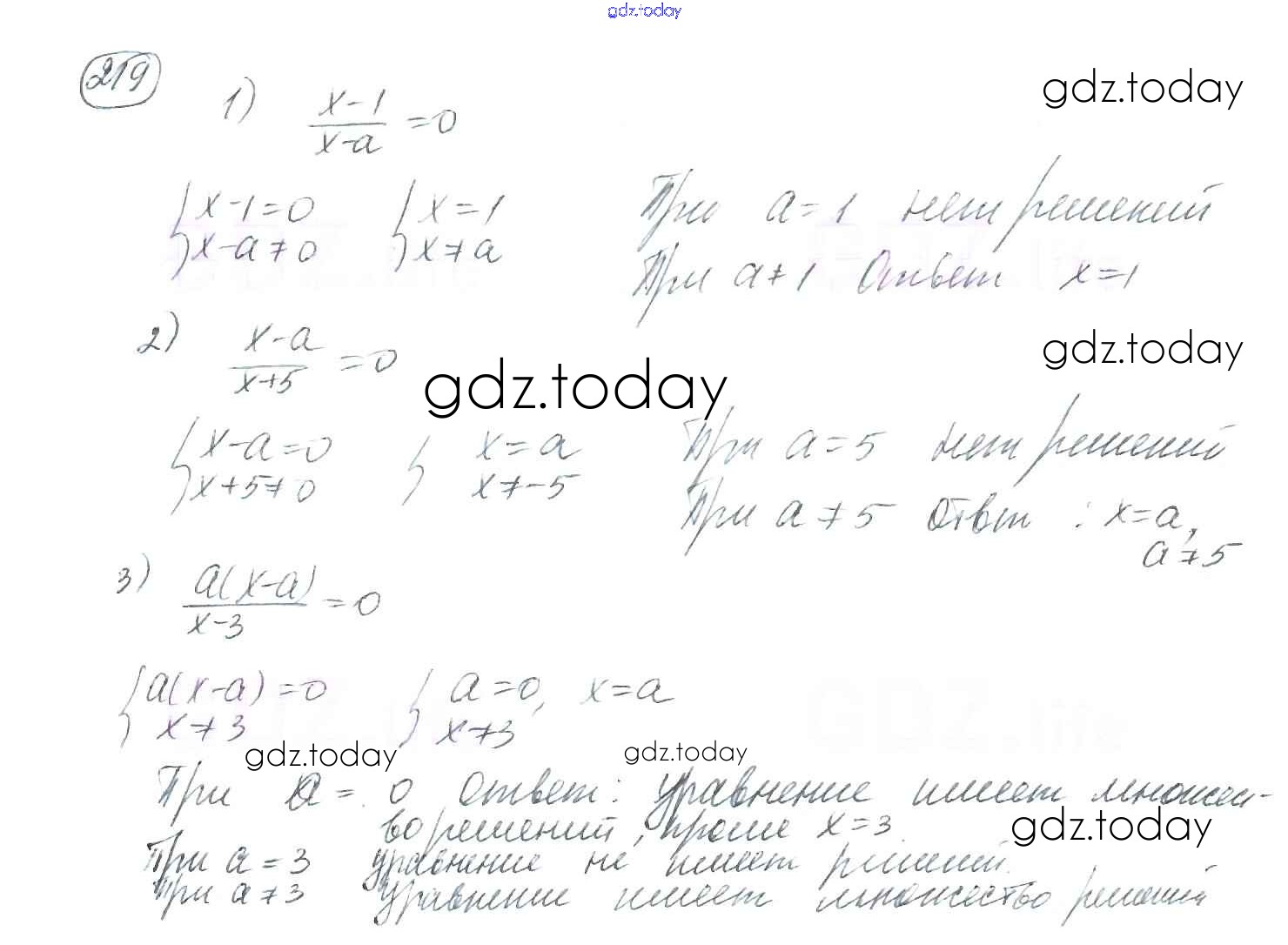 На страницах сайта gdz.today вы найдете учебный и вспомогательный материал, направленный на улучшения знаний школьной программы. ГДЗ - онлайн мир знаний §7. Равносильные уравнения. Рациональные уравнения Решение к главе 1. Рациональные выражения 219 Учебнику по Алгебре для 8 класса Мерзляк, Полонский Вентана-граф Алгоритм успеха 2016