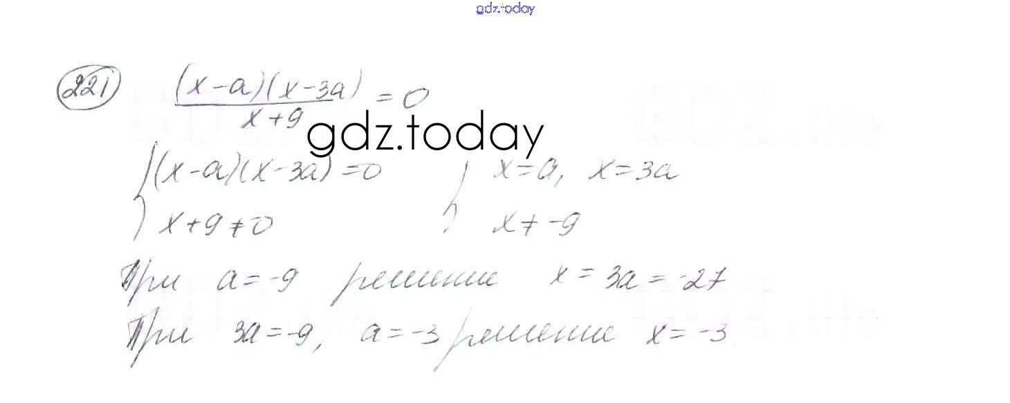 На страницах сайта gdz.today вы найдете учебный и вспомогательный материал, направленный на улучшения знаний школьной программы. ГДЗ - онлайн мир знаний §7. Равносильные уравнения. Рациональные уравнения Решение к главе 1. Рациональные выражения 221 Учебнику по Алгебре для 8 класса Мерзляк, Полонский Вентана-граф Алгоритм успеха 2016