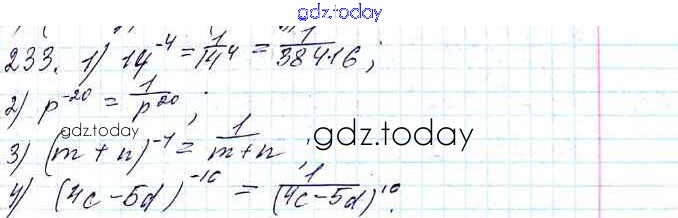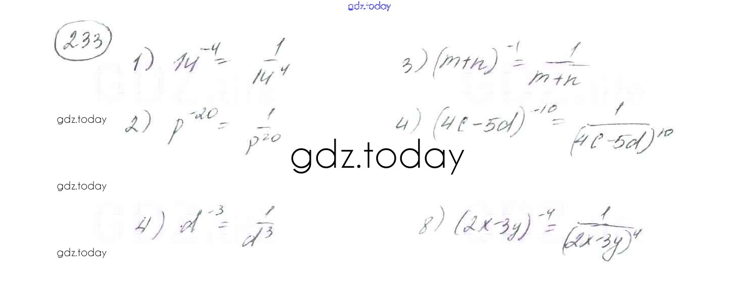 На страницах сайта gdz.today вы найдете учебный и вспомогательный материал, направленный на улучшения знаний школьной программы. ГДЗ - онлайн мир знаний §8. Степень с целым отрицательным показателем Решение к главе 1. Рациональные выражения 233 Учебнику по Алгебре для 8 класса Мерзляк, Полонский Вентана-граф Алгоритм успеха 2016