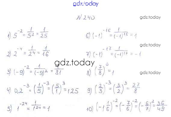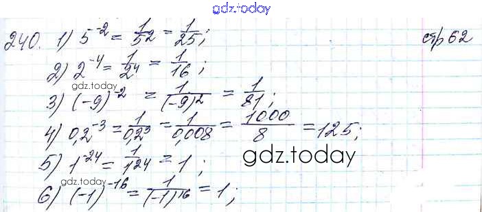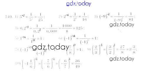 На страницах сайта gdz.today вы найдете учебный и вспомогательный материал, направленный на улучшения знаний школьной программы. ГДЗ - онлайн мир знаний §8. Степень с целым отрицательным показателем Решение к главе 1. Рациональные выражения 240 Учебнику по Алгебре для 8 класса Мерзляк, Полонский Вентана-граф Алгоритм успеха 2016