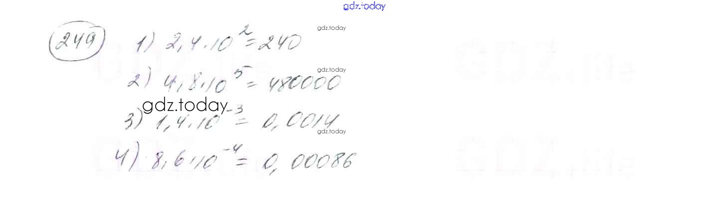 На страницах сайта gdz.today вы найдете учебный и вспомогательный материал, направленный на улучшения знаний школьной программы. ГДЗ - онлайн мир знаний §8. Степень с целым отрицательным показателем Решение к главе 1. Рациональные выражения 249 Учебнику по Алгебре для 8 класса Мерзляк, Полонский Вентана-граф Алгоритм успеха 2016