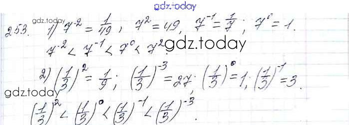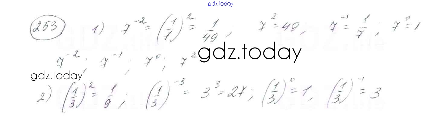 На страницах сайта gdz.today вы найдете учебный и вспомогательный материал, направленный на улучшения знаний школьной программы. ГДЗ - онлайн мир знаний §8. Степень с целым отрицательным показателем Решение к главе 1. Рациональные выражения 253 Учебнику по Алгебре для 8 класса Мерзляк, Полонский Вентана-граф Алгоритм успеха 2016