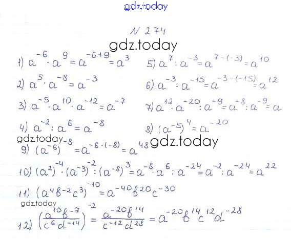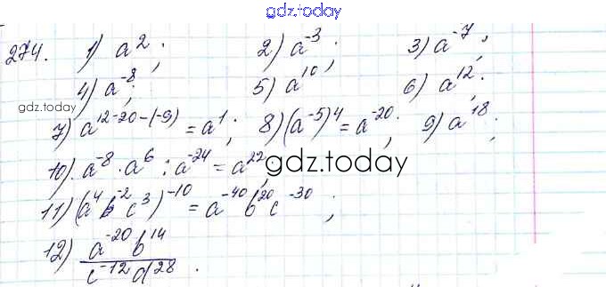 На страницах сайта gdz.today вы найдете учебный и вспомогательный материал, направленный на улучшения знаний школьной программы. ГДЗ - онлайн мир знаний §9. Свойства степени с целым показателем Решение к главе 1. Рациональные выражения 274 Учебнику по Алгебре для 8 класса Мерзляк, Полонский Вентана-граф Алгоритм успеха 2016