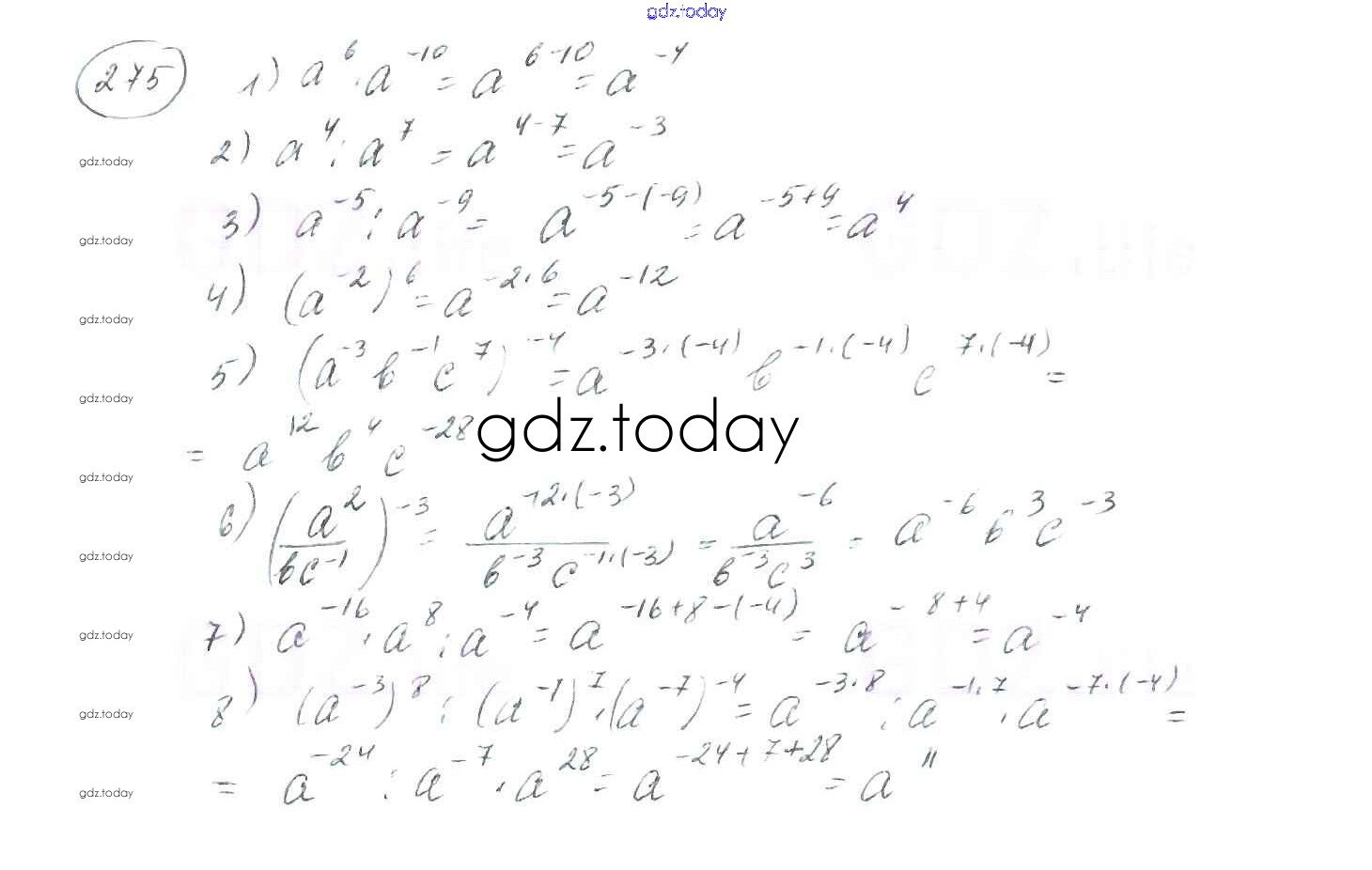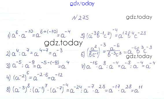 На страницах сайта gdz.today вы найдете учебный и вспомогательный материал, направленный на улучшения знаний школьной программы. ГДЗ - онлайн мир знаний §9. Свойства степени с целым показателем Решение к главе 1. Рациональные выражения 275 Учебнику по Алгебре для 8 класса Мерзляк, Полонский Вентана-граф Алгоритм успеха 2016