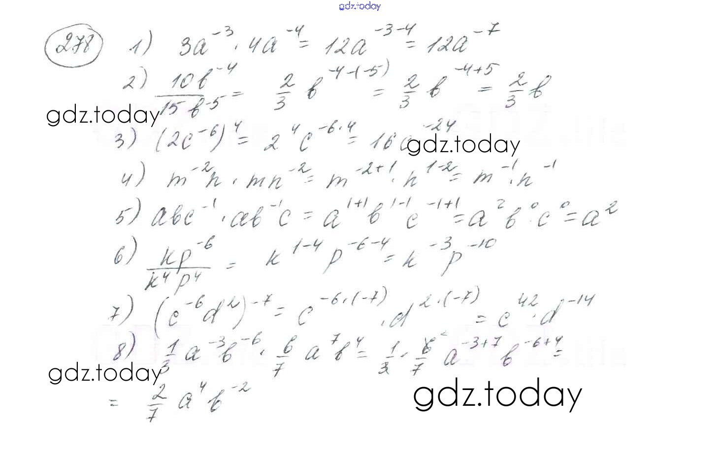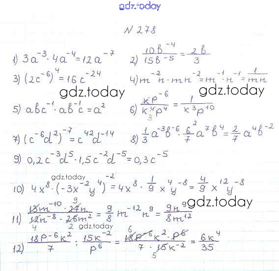 На страницах сайта gdz.today вы найдете учебный и вспомогательный материал, направленный на улучшения знаний школьной программы. ГДЗ - онлайн мир знаний §9. Свойства степени с целым показателем Решение к главе 1. Рациональные выражения 278 Учебнику по Алгебре для 8 класса Мерзляк, Полонский Вентана-граф Алгоритм успеха 2016