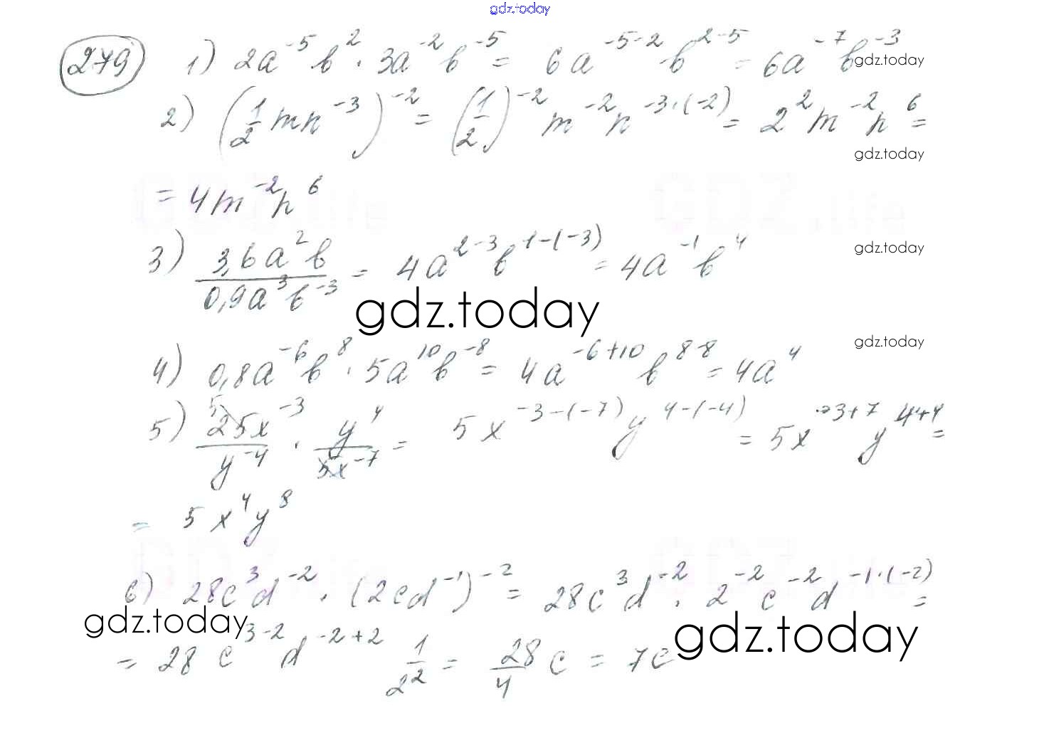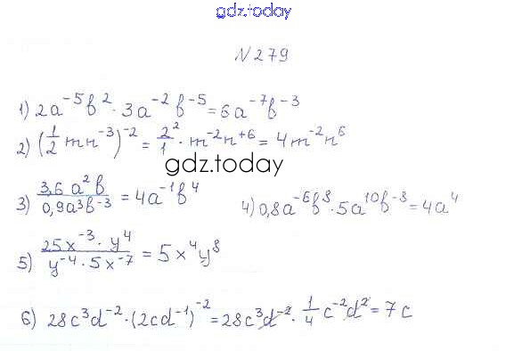 На страницах сайта gdz.today вы найдете учебный и вспомогательный материал, направленный на улучшения знаний школьной программы. ГДЗ - онлайн мир знаний §9. Свойства степени с целым показателем Решение к главе 1. Рациональные выражения 279 Учебнику по Алгебре для 8 класса Мерзляк, Полонский Вентана-граф Алгоритм успеха 2016