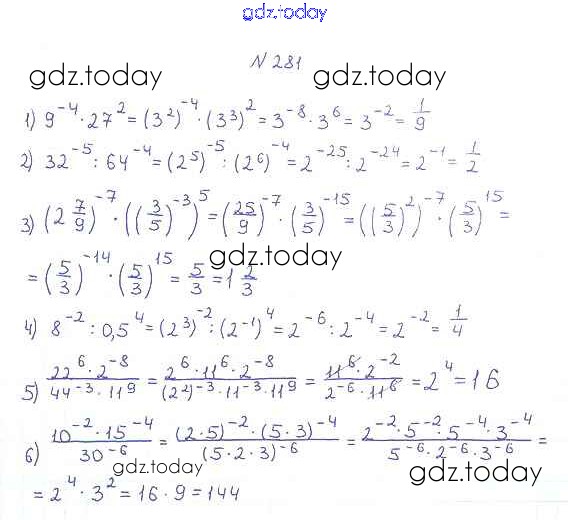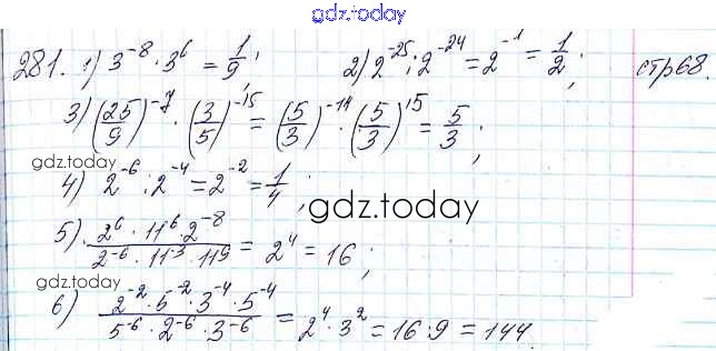 На страницах сайта gdz.today вы найдете учебный и вспомогательный материал, направленный на улучшения знаний школьной программы. ГДЗ - онлайн мир знаний §9. Свойства степени с целым показателем Решение к главе 1. Рациональные выражения 281 Учебнику по Алгебре для 8 класса Мерзляк, Полонский Вентана-граф Алгоритм успеха 2016