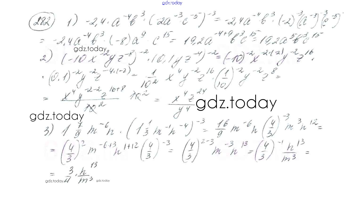 На страницах сайта gdz.today вы найдете учебный и вспомогательный материал, направленный на улучшения знаний школьной программы. ГДЗ - онлайн мир знаний §9. Свойства степени с целым показателем Решение к главе 1. Рациональные выражения 282 Учебнику по Алгебре для 8 класса Мерзляк, Полонский Вентана-граф Алгоритм успеха 2016