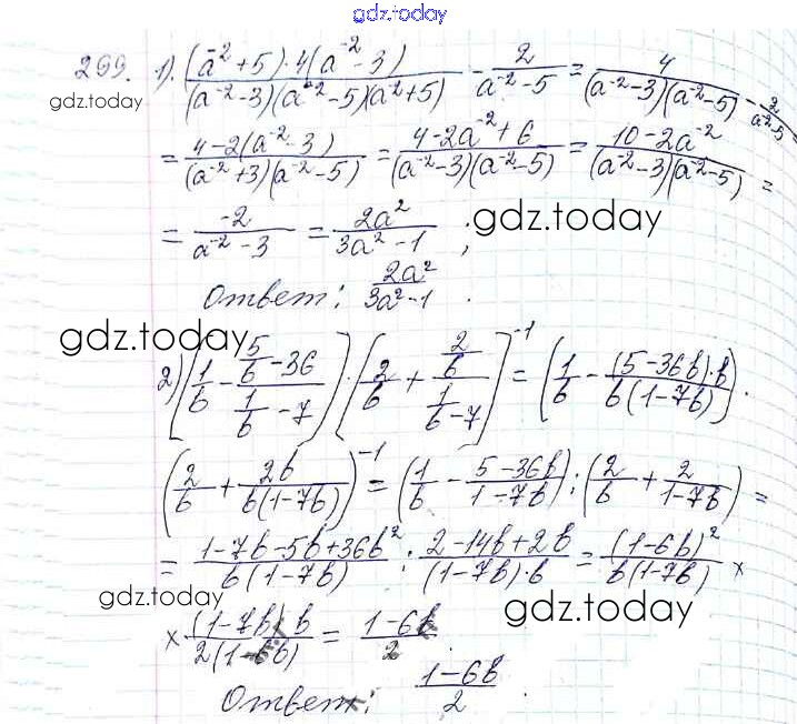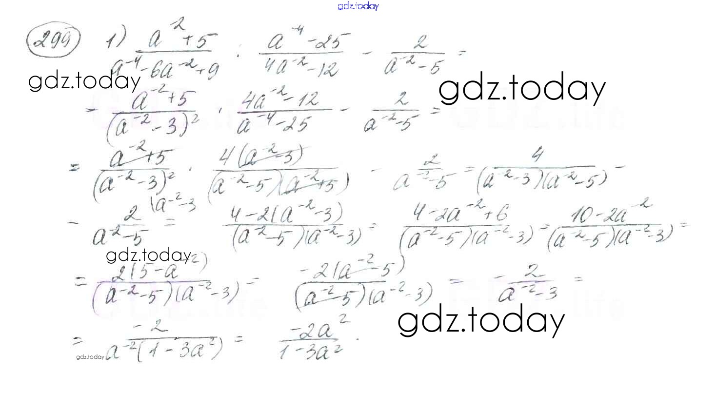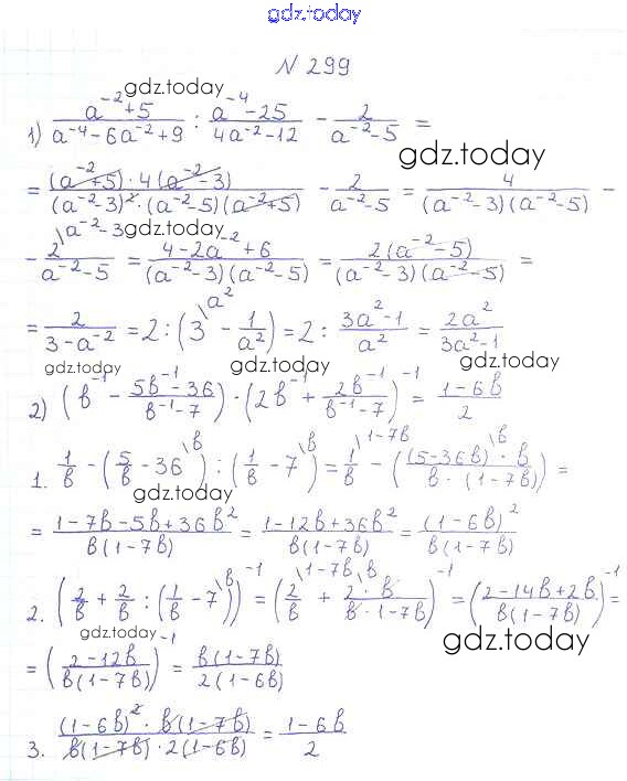 На страницах сайта gdz.today вы найдете учебный и вспомогательный материал, направленный на улучшения знаний школьной программы. ГДЗ - онлайн мир знаний §9. Свойства степени с целым показателем Решение к главе 1. Рациональные выражения 299 Учебнику по Алгебре для 8 класса Мерзляк, Полонский Вентана-граф Алгоритм успеха 2016
