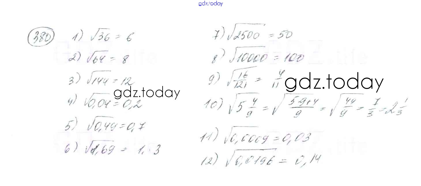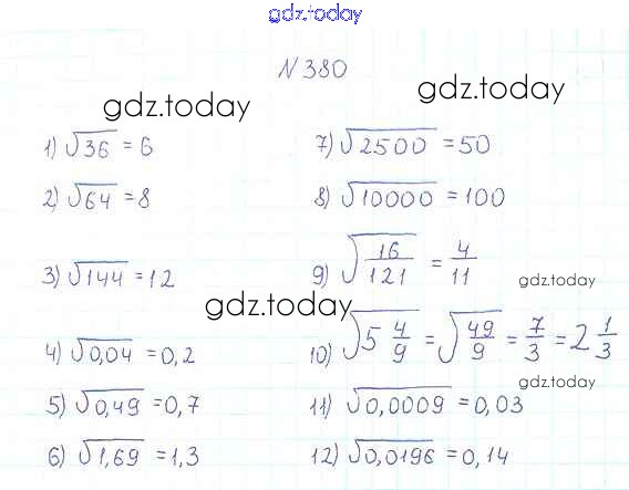На страницах сайта gdz.today вы найдете учебный и вспомогательный материал, направленный на улучшения знаний школьной программы. ГДЗ - онлайн мир знаний §12. Квадратные корни. Арифметический квадратный корень Решение к главе 2. Квадратные корни. Действительные числа 380 Учебнику по Алгебре для 8 класса Мерзляк, Полонский Вентана-граф Алгоритм успеха 2016