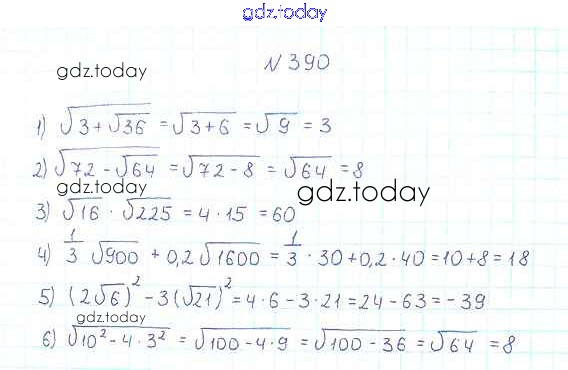 На страницах сайта gdz.today вы найдете учебный и вспомогательный материал, направленный на улучшения знаний школьной программы. ГДЗ - онлайн мир знаний §12. Квадратные корни. Арифметический квадратный корень Решение к главе 2. Квадратные корни. Действительные числа 390 Учебнику по Алгебре для 8 класса Мерзляк, Полонский Вентана-граф Алгоритм успеха 2016