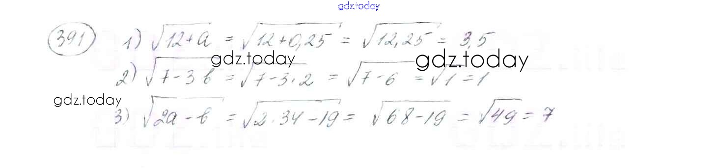 На страницах сайта gdz.today вы найдете учебный и вспомогательный материал, направленный на улучшения знаний школьной программы. ГДЗ - онлайн мир знаний §12. Квадратные корни. Арифметический квадратный корень Решение к главе 2. Квадратные корни. Действительные числа 391 Учебнику по Алгебре для 8 класса Мерзляк, Полонский Вентана-граф Алгоритм успеха 2016