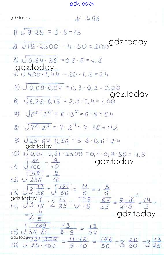 На страницах сайта gdz.today вы найдете учебный и вспомогательный материал, направленный на улучшения знаний школьной программы. ГДЗ - онлайн мир знаний §16. Свойства арифметического квадратного корня Решение к главе 2. Квадратные корни. Действительные числа 498 Учебнику по Алгебре для 8 класса Мерзляк, Полонский Вентана-граф Алгоритм успеха 2016