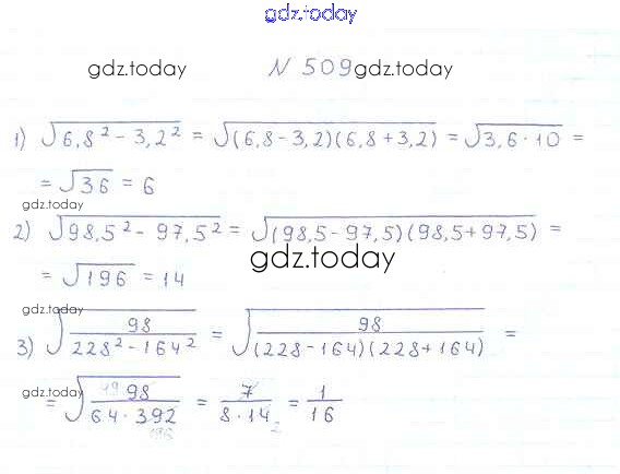 Ответы к §16. Свойства арифметического квадратного корня Решение к главе 2. Квадратные корни. Действительные числа 509 Учебнику по Алгебре для 8 класса Мерзляк, Полонский Вентана-граф Алгоритм успеха 2016