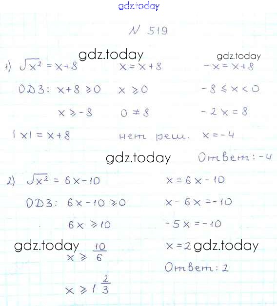 Ответы к §16. Свойства арифметического квадратного корня Решение к главе 2. Квадратные корни. Действительные числа 519 Учебнику по Алгебре для 8 класса Мерзляк, Полонский Вентана-граф Алгоритм успеха 2016