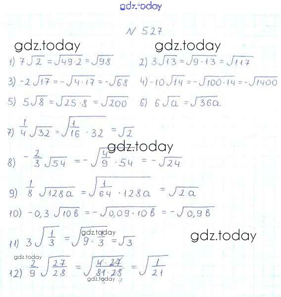 На страницах сайта gdz.today вы найдете учебный и вспомогательный материал, направленный на улучшения знаний школьной программы. ГДЗ - онлайн мир знаний §17. Тождественные преобразования выражений, содержащих арифметические квадратные корни Решение к главе 2. Квадратные корни. Действительные числа 527 Учебнику по Алгебре для 8 класса Мерзляк, Полонский Вентана-граф Алгоритм успеха 2016