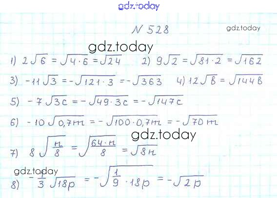 На страницах сайта gdz.today вы найдете учебный и вспомогательный материал, направленный на улучшения знаний школьной программы. ГДЗ - онлайн мир знаний §17. Тождественные преобразования выражений, содержащих арифметические квадратные корни Решение к главе 2. Квадратные корни. Действительные числа 528 Учебнику по Алгебре для 8 класса Мерзляк, Полонский Вентана-граф Алгоритм успеха 2016