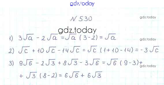 На страницах сайта gdz.today вы найдете учебный и вспомогательный материал, направленный на улучшения знаний школьной программы. ГДЗ - онлайн мир знаний §17. Тождественные преобразования выражений, содержащих арифметические квадратные корни Решение к главе 2. Квадратные корни. Действительные числа 530 Учебнику по Алгебре для 8 класса Мерзляк, Полонский Вентана-граф Алгоритм успеха 2016