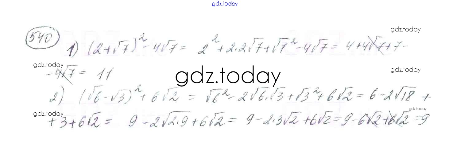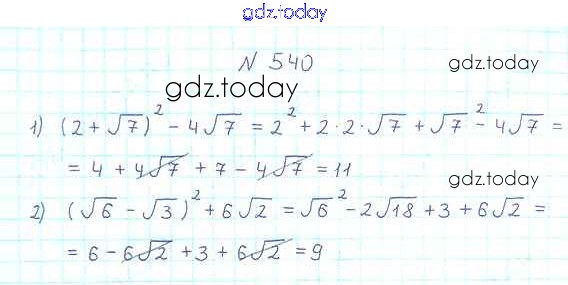 Ответы к §17. Тождественные преобразования выражений, содержащих арифметические квадратные корни Решение к главе 2. Квадратные корни. Действительные числа 540 Учебнику по Алгебре для 8 класса Мерзляк, Полонский Вентана-граф Алгоритм успеха 2016
