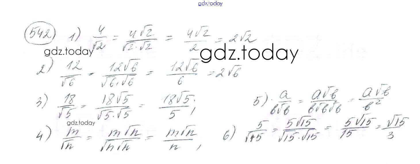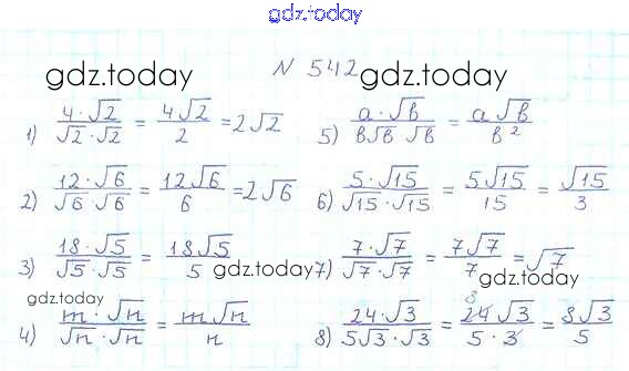 На страницах сайта gdz.today вы найдете учебный и вспомогательный материал, направленный на улучшения знаний школьной программы. ГДЗ - онлайн мир знаний §17. Тождественные преобразования выражений, содержащих арифметические квадратные корни Решение к главе 2. Квадратные корни. Действительные числа 542 Учебнику по Алгебре для 8 класса Мерзляк, Полонский Вентана-граф Алгоритм успеха 2016