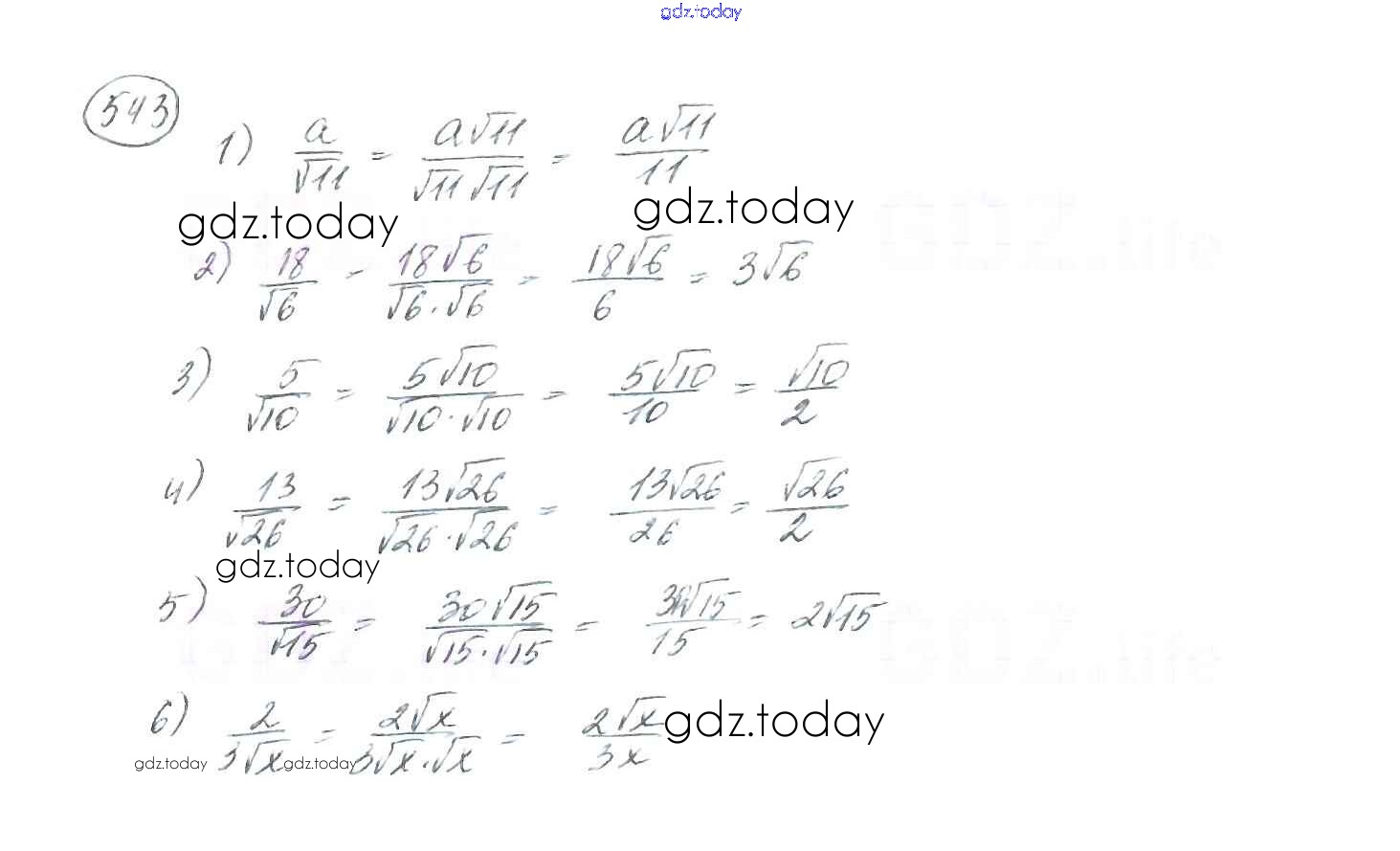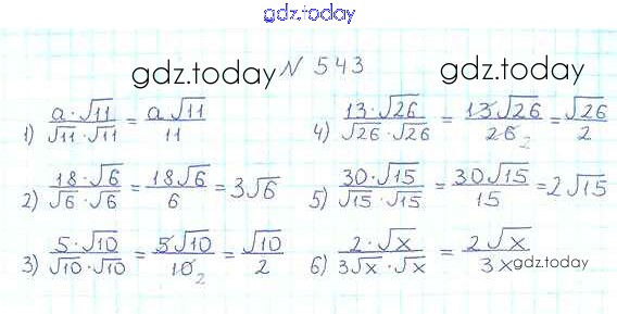 На страницах сайта gdz.today вы найдете учебный и вспомогательный материал, направленный на улучшения знаний школьной программы. ГДЗ - онлайн мир знаний §17. Тождественные преобразования выражений, содержащих арифметические квадратные корни Решение к главе 2. Квадратные корни. Действительные числа 543 Учебнику по Алгебре для 8 класса Мерзляк, Полонский Вентана-граф Алгоритм успеха 2016