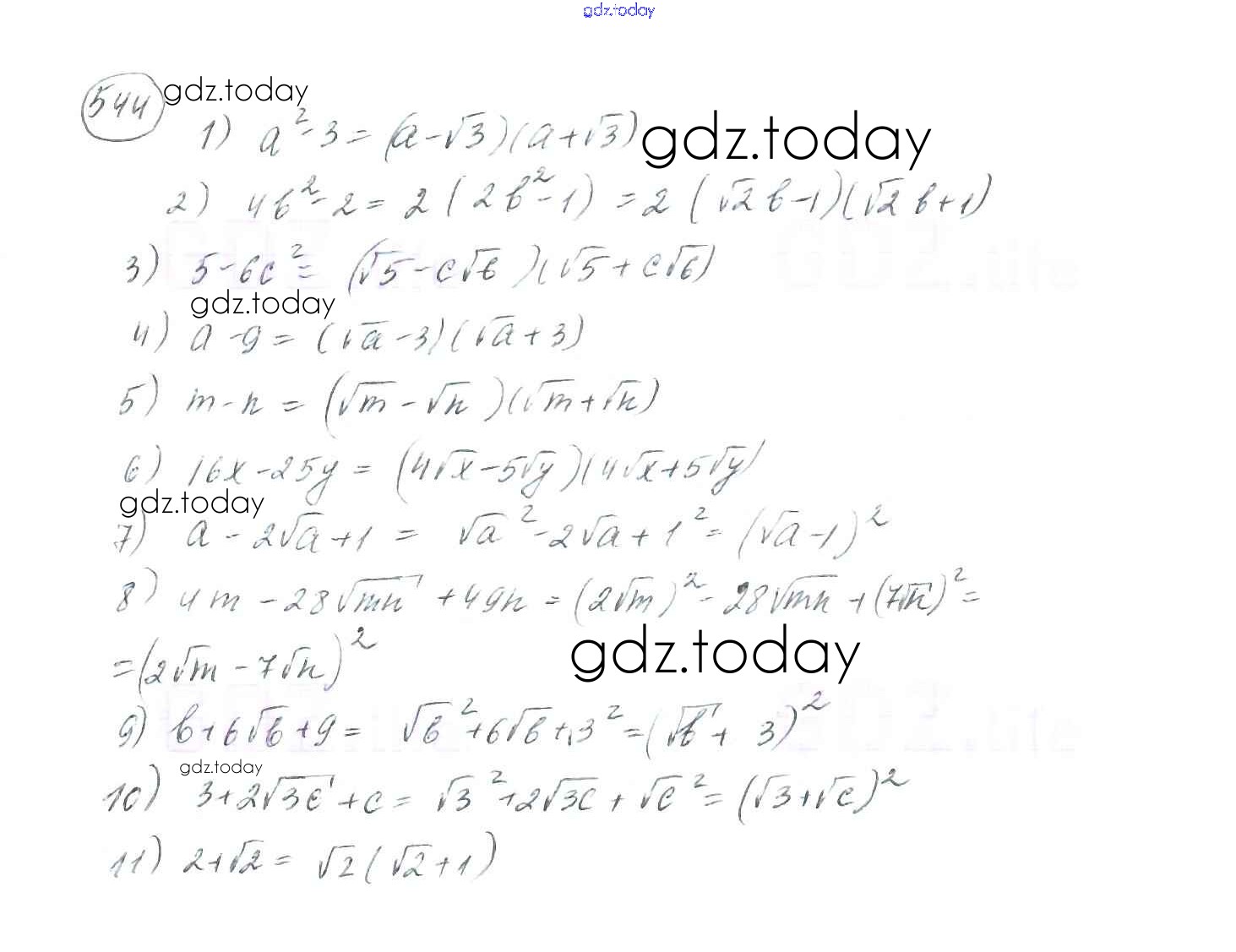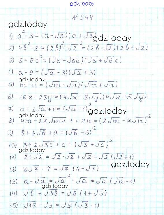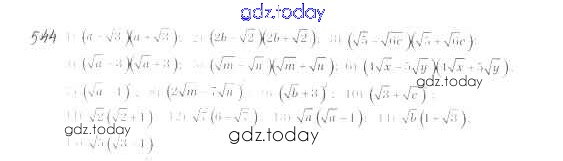 На страницах сайта gdz.today вы найдете учебный и вспомогательный материал, направленный на улучшения знаний школьной программы. ГДЗ - онлайн мир знаний §17. Тождественные преобразования выражений, содержащих арифметические квадратные корни Решение к главе 2. Квадратные корни. Действительные числа 544 Учебнику по Алгебре для 8 класса Мерзляк, Полонский Вентана-граф Алгоритм успеха 2016