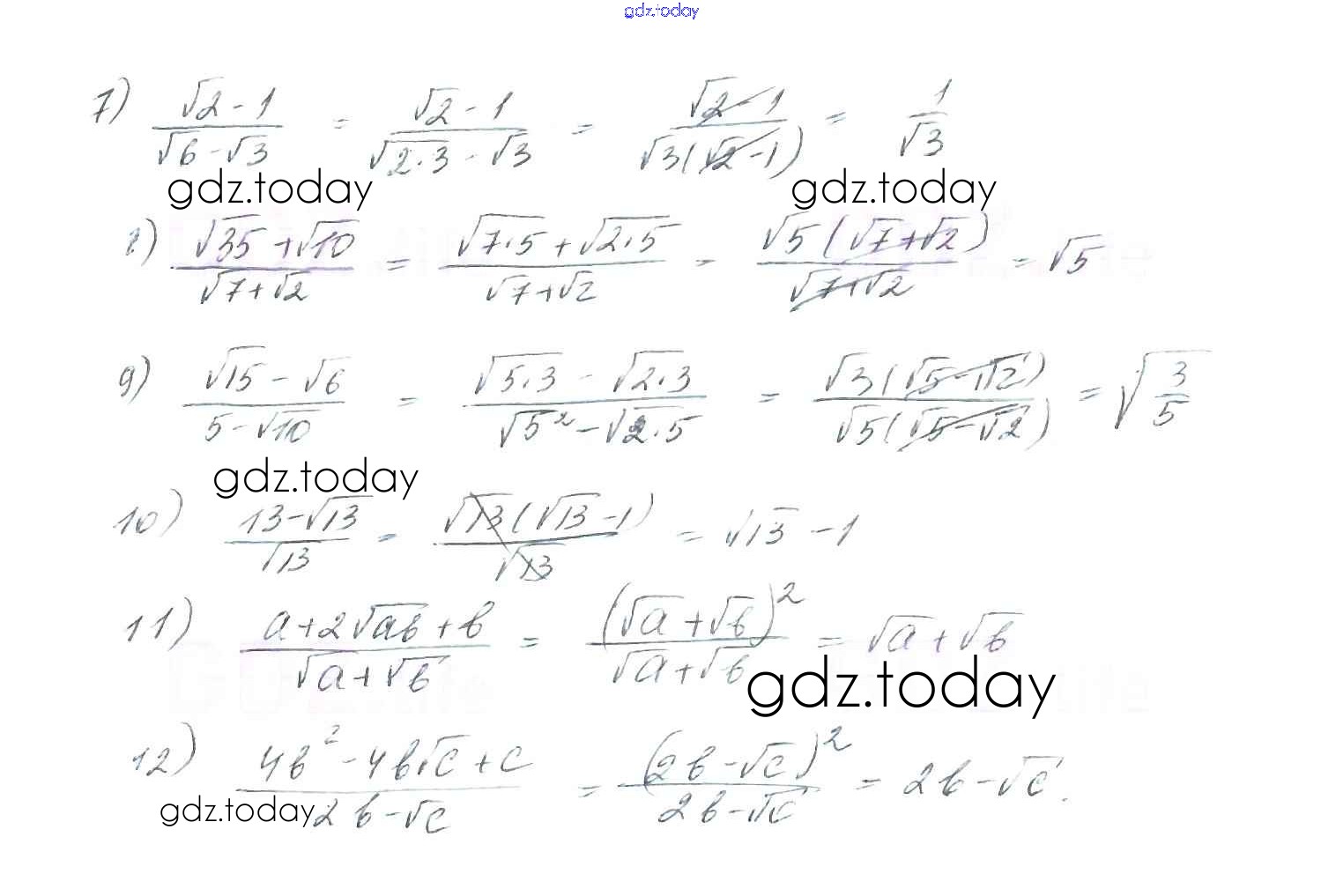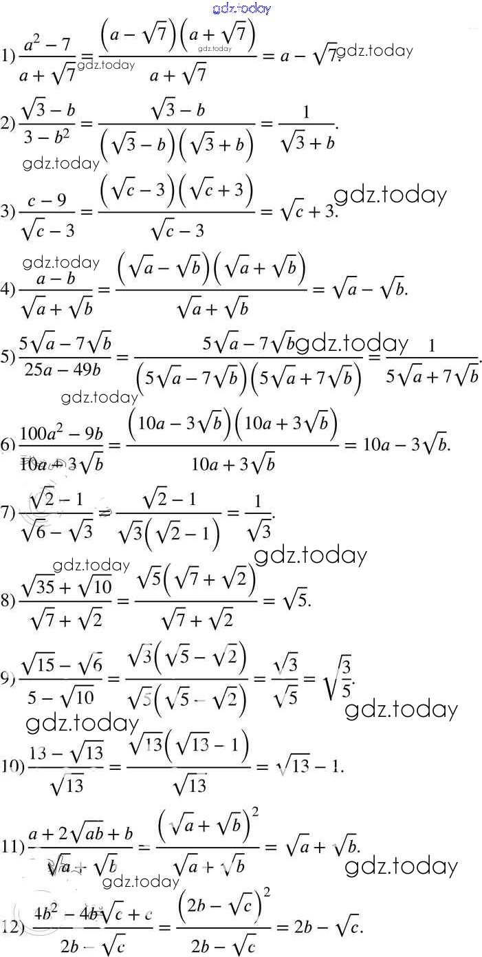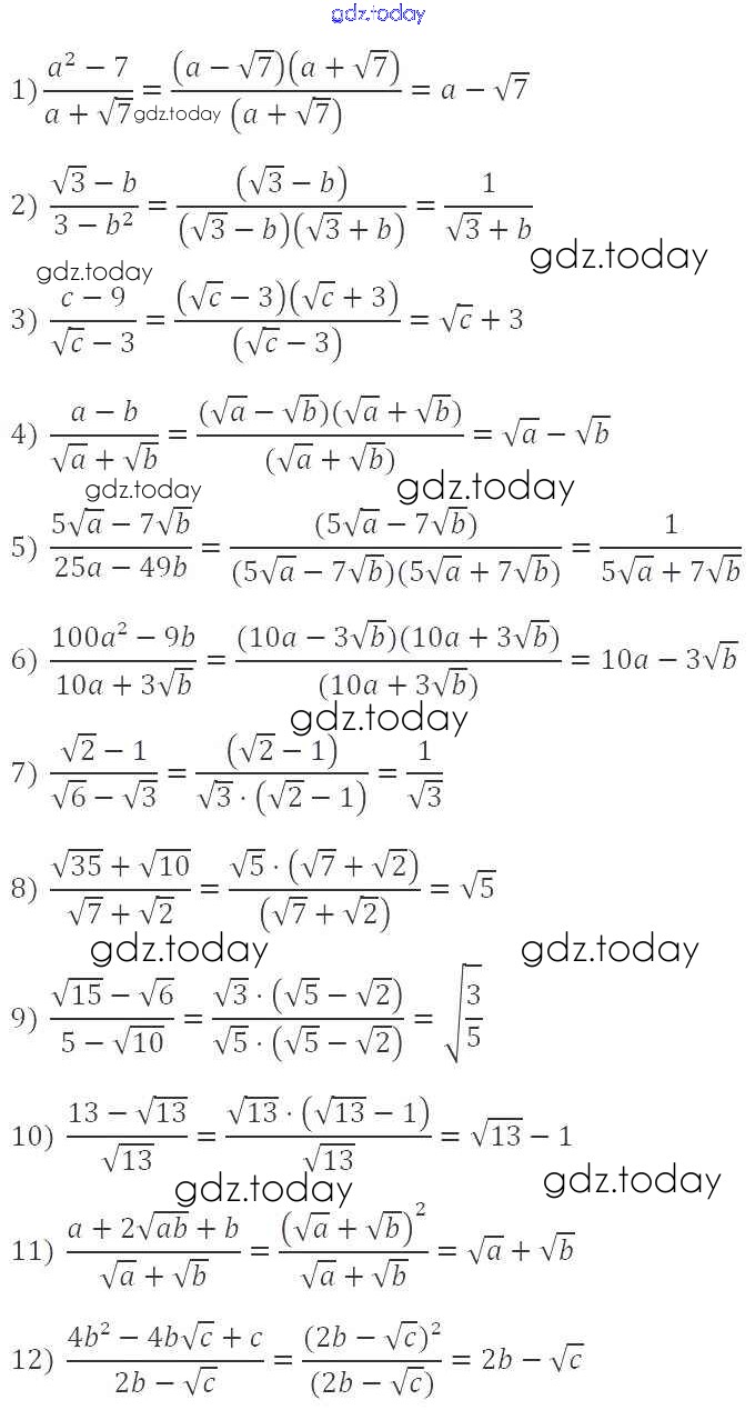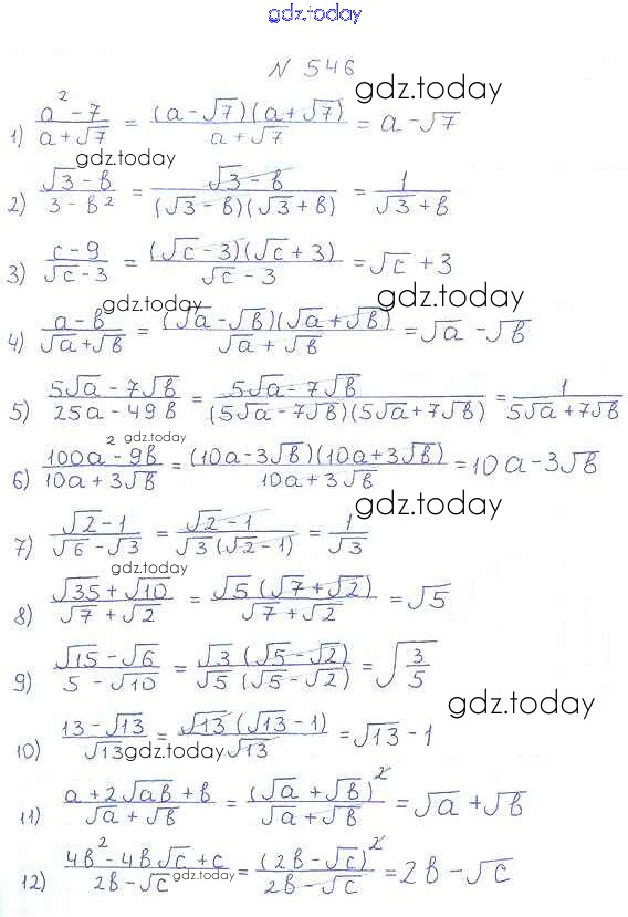 На страницах сайта gdz.today вы найдете учебный и вспомогательный материал, направленный на улучшения знаний школьной программы. ГДЗ - онлайн мир знаний §17. Тождественные преобразования выражений, содержащих арифметические квадратные корни Решение к главе 2. Квадратные корни. Действительные числа 546 Учебнику по Алгебре для 8 класса Мерзляк, Полонский Вентана-граф Алгоритм успеха 2016