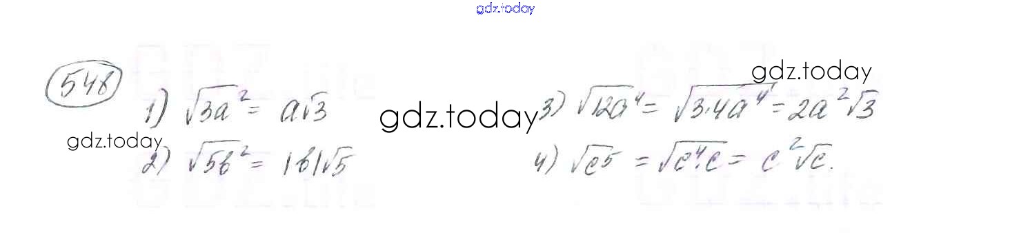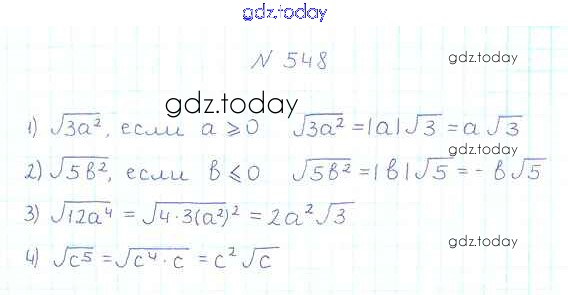 Ответы к §17. Тождественные преобразования выражений, содержащих арифметические квадратные корни Решение к главе 2. Квадратные корни. Действительные числа 548 Учебнику по Алгебре для 8 класса Мерзляк, Полонский Вентана-граф Алгоритм успеха 2016