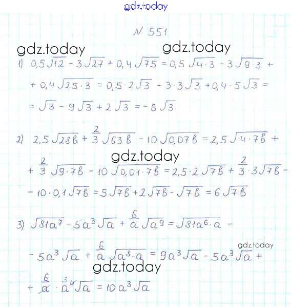 Ответы к §17. Тождественные преобразования выражений, содержащих арифметические квадратные корни Решение к главе 2. Квадратные корни. Действительные числа 551 Учебнику по Алгебре для 8 класса Мерзляк, Полонский Вентана-граф Алгоритм успеха 2016